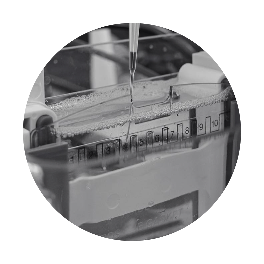 DNA molecules have a negative charge on their surface, so under the influence of an applied current they move in the agarose or polyacrylamide gel towards the positive electrode. To identify the size of DNA molecules, a mass standard is placed on the gel, which migrates in the gel in parallel with the analyzed sample and allows us to determine whether the desired product has been obtained.